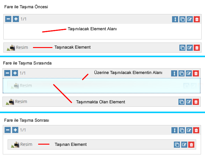 Not: Akordion elementi içerisine sadece alan elementi atabilirsiniz.