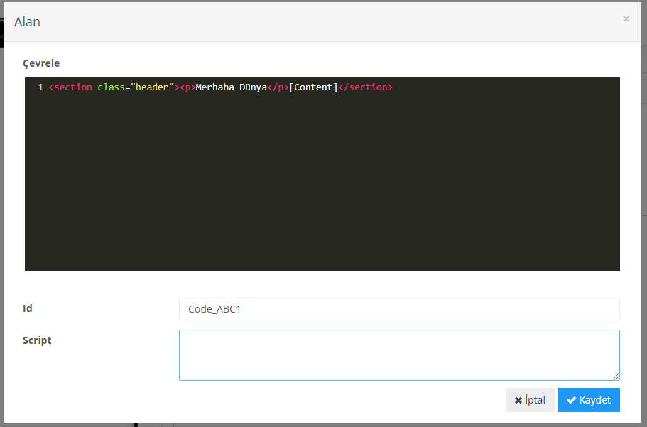 <section class="header"><p>Merhaba Dünya</p>[Content]</section> kullanılabilir.