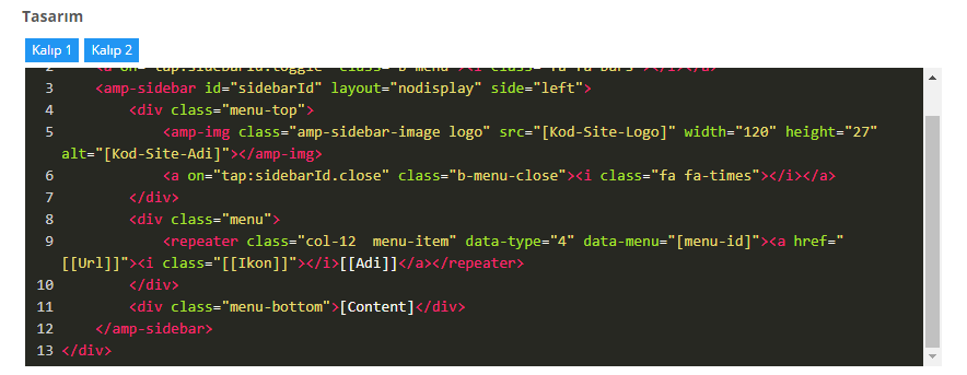Bazı amp elementlerinin içerisinde çevreleme ve kod alanları mevcuttur.