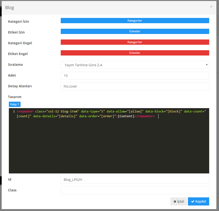 İster nesneler ile döngüye girecek kalıbı hazırlayın. isternizde kodlama ile. Tamamen esnek bir yapı.