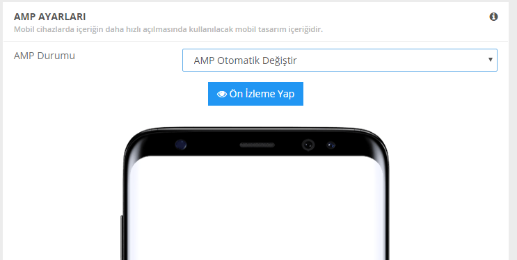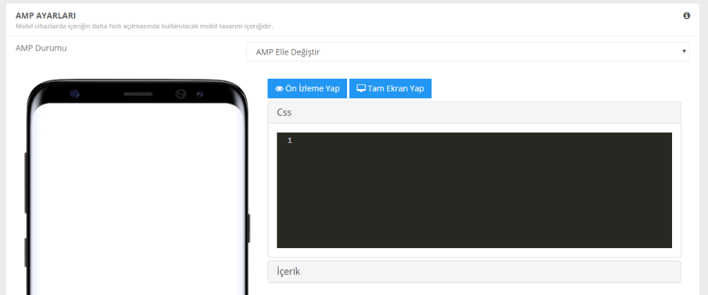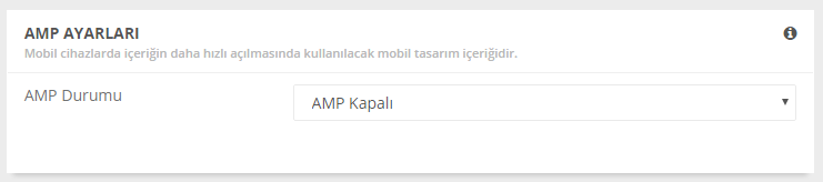 Eğer kapalı modu seçilir ise amp çalışmaz ve normal bir site görünümü elde edilir.