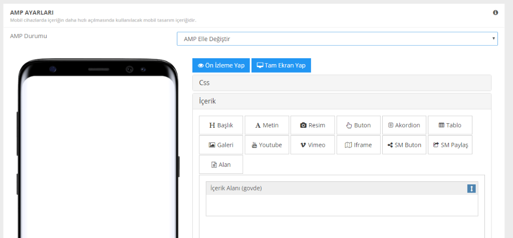 Bu içerik türlerine göre amp türleri yer almaktadır.