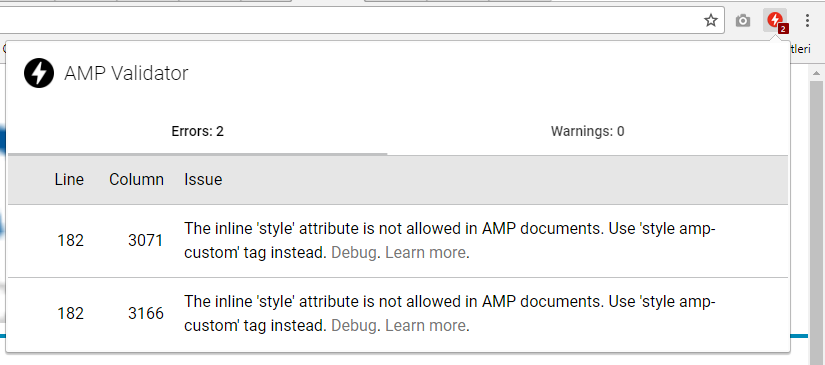 Amp işleminin örnekleri için: Chrome Amp Validator adresini ziyaret edebilirsiniz.